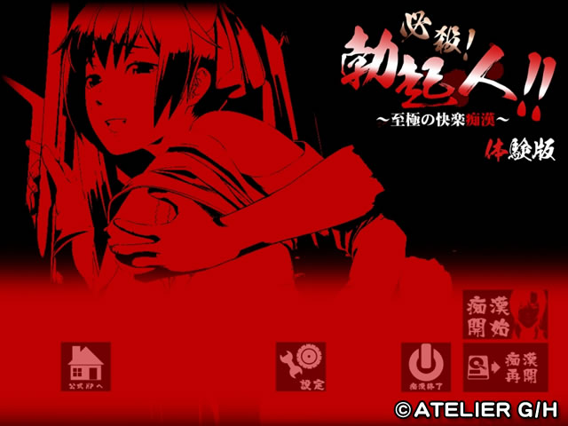 本ソフトウェアはインストールの必要がありません.ダウンロードしたファイルを解凍し, 生成された「必殺!勃起人!!-体験版-」フォルダ内の「必殺勃起人_TR.exe」をクリックするとゲームがスタートします.