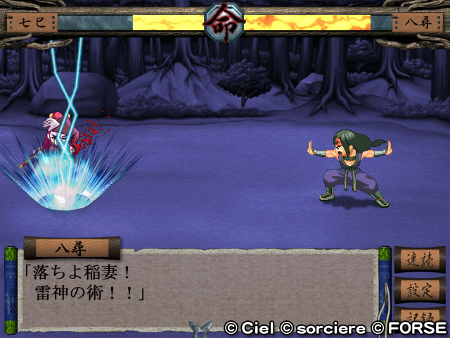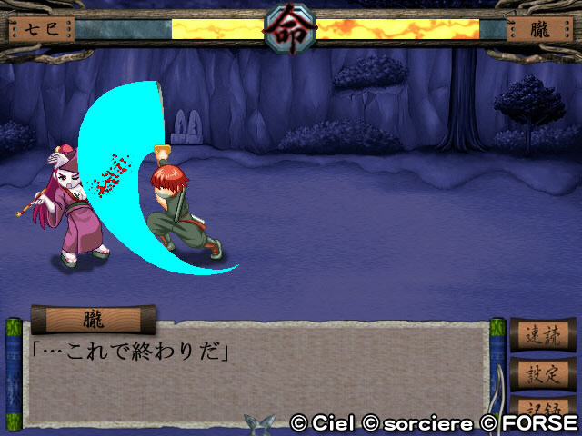 敵のリーダーを倒せば勝利,逆に主人公(八尋,朧)が倒されると敗北となります.(ゲームオーバーになる場合と,そのままゲームが進行する場合があります)