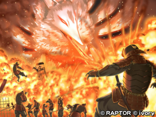城を離れていた橘征四郎は,急いで駆けつけました. 燃える城,そこで征四郎が見たのものは,妖しい雰囲気を纏った女と,糸に絡め取られ無残にも吊りあげられた棗姫でした.棗を助けるため,征四郎は女に斬りかかりますが,倒され気を失ってしまいます.