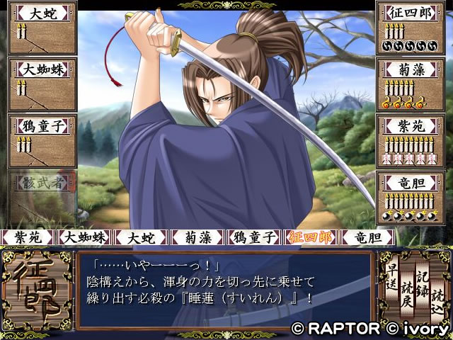 主人公の征四郎は,妖刀を使用しているので大技を繰り出す際は,体力値を使用します.技の使いどころが攻略のポイントとなるでしょう.