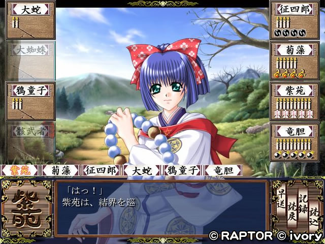 見かけは幼く,言動も少女らしいが,頼りになる仲間である.旅の中で一人前の陰陽師へと成長していく.