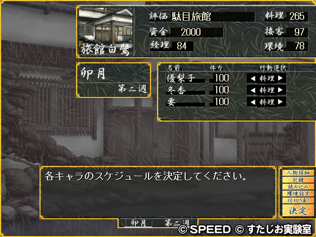 毎週の初めに従業員に指示を出し,旅館の仕事を行わせます.